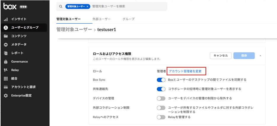 弊社より、Box社へ管理者変更を依頼いたします。