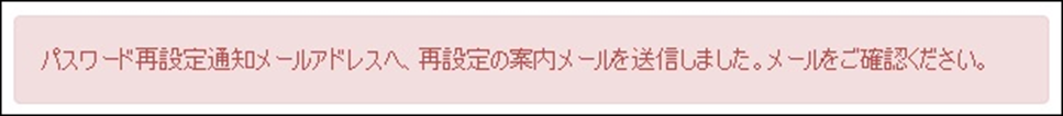 下図のメッセージが表示され、手順[2]で入力したメールアドレス宛に、パスワード再設定用のURLがメールで送信されます。